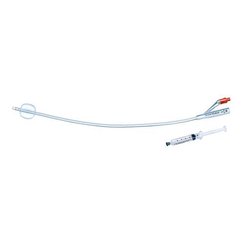 Catetere vescicale con palloncino, per lunga permanenza, Classe IIB, in puro silicone 100%, con imbuto a valvola speciale per siringhe luer e luer-lock, punta cilindrica o Tiemann, due fori laterali; con siringa pre-riempita di acqua e glicerina 10% per il gonfiaggio del palloncino. Confezione singola sterile contenente le modalità di utilizzo.