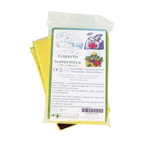 Coperta isotermica. Le proprietà di riflessione del materiale permettono di proteggere il corpo dai raggi calorici o di evitare la dispersione del calore dal corpo.