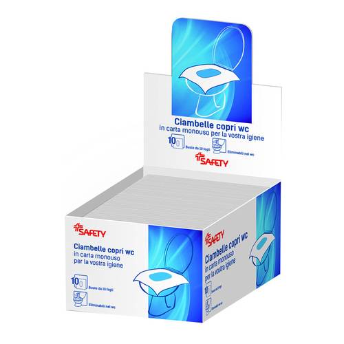 Safety CIAMBELLE COPRI WC Ciambelle monouso in carta biodegradabile. Per l'igiene nel caso di utilizzo di servizi igienici pubblici e in ambito di degenza. Eliminabili nello scarico del water.