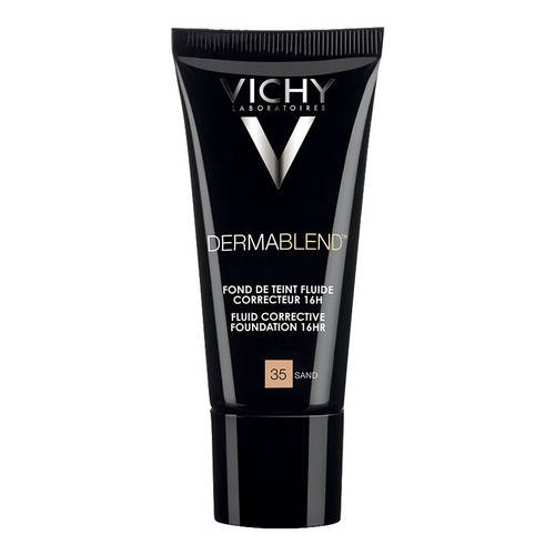 VICHY DERMABLEND Fondotinta fluido correttore per pelle sensibile. Utile in caso di colorito non uniforme, occhiaie, rossori diffusi. Testato su pelle sensibile. Senza parabeni. Formulato per ridurre i rischi di allergia. Non comedogeno. Senza profumo. SPF 30. Tonalità: 15 Opal, 25 Nude, 35 Sand, 45 Gold, 55 Bronze.