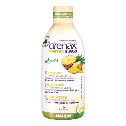 Sciroppo di fruttosio, acqua, aloe (Aloe vera L. Burm. F. syn. Aloe barbadensis Miller) succo, ortosifon (Ortosiphon stamineus Benth) foglie e.s., betulla (Betula pendula Roth, Betula pubescens Ehrh 50:50) foglie e.s., centella (Centella asiatica L. Urb.) erba e.s., tè verde (Camellia sinensis L. Kuntze) foglie e.s., ribes (Ribes nigrum L.) foglie e.s., Carciofo (Cynara scolymus L.) foglie e.s., curcuma (Curcuma longa L.) rizoma e.f., cardo mariano (Silybum marianum L. Gaertn.) frutti e.s., aroma; acidificante: acido citrico; conservanti: potassio sorbato, sodio benzoato; lespedezaé (Lespedeza capitata Michx.) erba e.f.., uva rossa (Vitis vinifera L.) semi e.s., rutina*, ananas (Ananas comosus L. Merr.) gambo e.s.