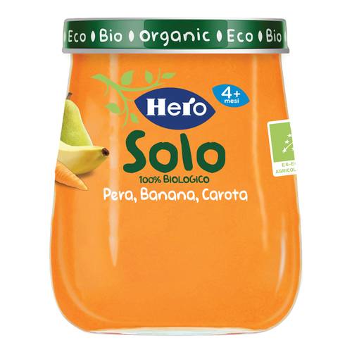 Hero Solo Pera, Banana e Carota è una ricetta semplice preparata con solo frutta e verdura biologica, nata per accompagnare i più piccoli alla scoperta graduale di nuovi sapori assecondando il naturale sviluppo della loro prima infanzia.