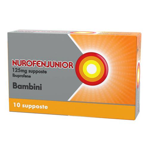 Posologia: solo per un breve periodo di trattamento. La dose massima giornaliera di ibuprofene e' pari a 20-30 mg/kg di peso corporeo, suddivisa in 3 o 4 somministrazioni. Cio' significa - Bambini di peso corporeo tra 12,5 e 17 kg (tra i 2 e i 4 anni): 1 supposta all'inizio del trattamento, da ripetere, se necessario, dopo almeno 6-8 ore. Non devono essere somministrate piu' di 3 supposte nell'arco delle 24 ore. Bambini di peso corporeo tra 17 e 20,5 kg (tra i 4 e i 6 anni): 1 suppostaall'inizio del trattamento, da ripetere se necessario, dopo almeno 6ore. Non devono essere somministrate piu' di 4 supposte nell'arco delle 24 ore. Le supposte da 125 mg di Nurofenjunior sono controindicate nei bambini che pesano meno di 12,5 kg (al di sotto dei 2 anni di eta'), in quanto sono necessarie supposte di dosaggio piu' basso (vedere anche paragrafo 4.3). La somministrazione nei pazienti con insufficienzarenale o epatica deve avvenire dopo aver consultato il medico. Nel caso in cui questo medicinale sia richiesto per piu' di 3 giorni, o nelcaso di peggioramento dei sintomi deve essere consultato il medico. Gli effetti indesiderati possono essere minimizzati con l'uso della doseminima efficace per la durata di trattamento piu' breve possibile necessaria per controllare i sintomi (vedere paragrafo 4.4). Modo di somministrazione: uso rettale.
