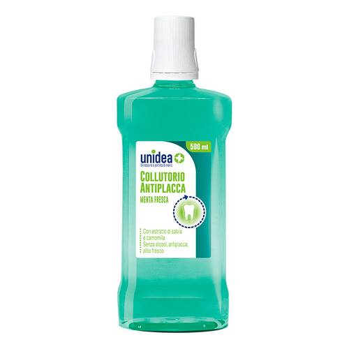 Collutorio con estratto di salvia e camomilla aiuta a contrastare la formazione della placca e delle carie.